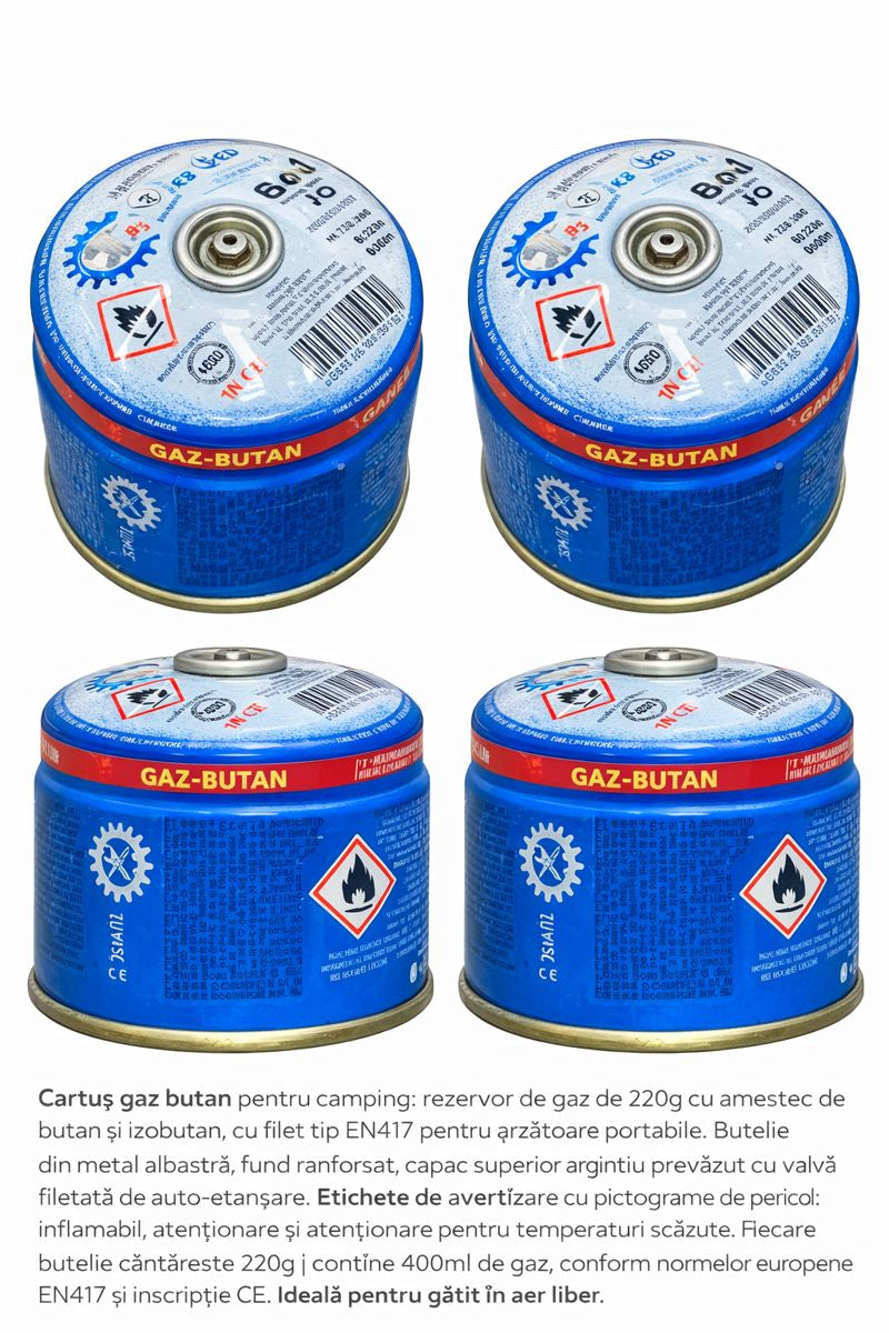 Cartușul de gaz butan 220g este soluția ideală pentru camping, drumeții, pescuit, picnic și activități...
