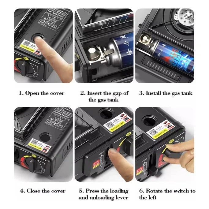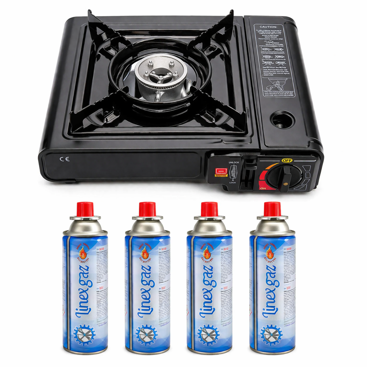 Aragaz camping, aprindere automata + 4 rezerve de gaz , 227 ml, autonomie 1.8 h, utila pentru deplasari